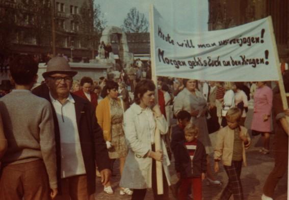 Bernd Bast (Junge unter Plakat in Heller Jacke, heute Webmaster von Kasselberg)