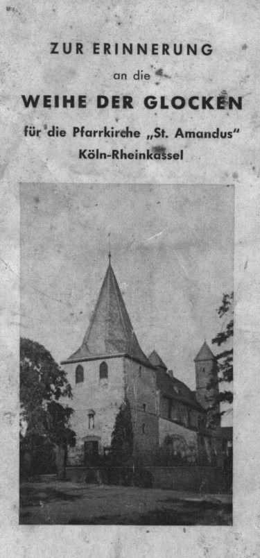 Diese Glocke wurde mit zwei weiteren Glocken in Auftrag gegeben, und zwar als ergänzendes Geläut zu der ältesten Glocke von 1507. Iniziert wurde dies vom Kirchenvorstand St. Amandus, durch Pfarrer Johannes Schäfer. Gegossen wurden sie alle in der Eifeler Glockengießerei "Johannes Mark & Sohn" in Brockscheid bei Daun, geprüft durch den Glockensachverständigen der Erzdiözese Köln, Herrn Musikdirektor J. Schaeben, Euskirchen und schließlich geweiht durch den Hochwürdigsten Herrn, Prälat Dr. Jakob Schlafke, am 12. Dezember 1965.