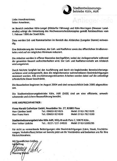 Die Hochwasserschutz-Verbesserungsmaßnahmen, welche für unsere Orte entscheidend sind - von Merkenich Ölhafen bis Langel-Fähre - sind vom RP Köln noch nicht genehmigt. (Gottes Mühlen mahlen langsam, die der Behörden langsamer).