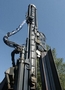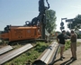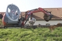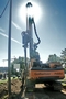Die Einbringung der Spunddielen ist bis auf ca. 500m Strecke fertig. Zur Zeit werden die längsten Dielen (16,50m) eingebracht. Dazu wurde eine neue Ramme eingesetzt, die diese Länge verarbeiten kann (Spektakulär!).