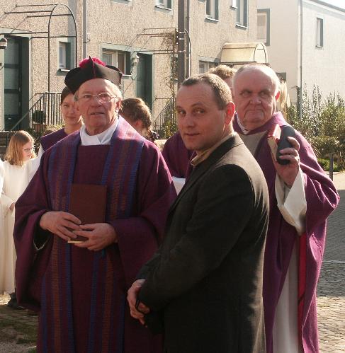 Pastor Höhner mit Steinmetz Martin Miedl.