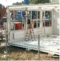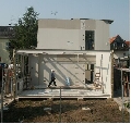So wurde dann schließlich am frühen Morgen des 5. August mit der Zusammensetzung der Fertigbau-Elemente begonnen und schon nach sehr kurzer Zeit war das Gebäude fertiggestellt. Und schon bald hatten die Rheinkasseler einen Namen für das neue zweistöckige Gebäude: Hochschule