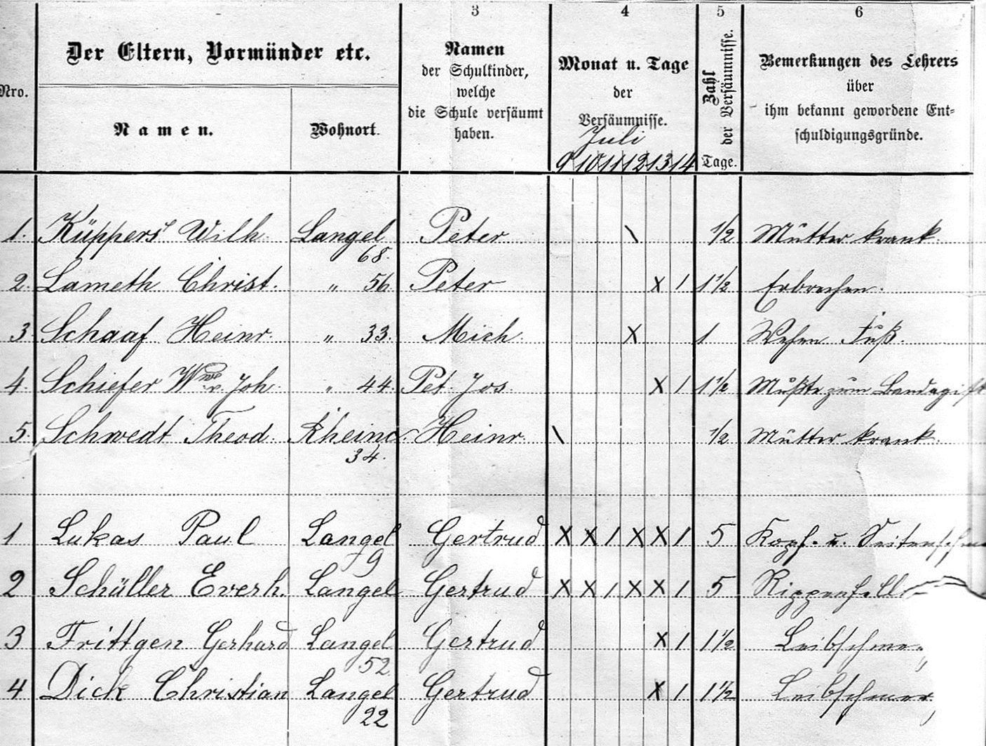 5 | Schwedt, Theod. | Rheinkassel (34) | Heinr. | 0,5 | Mutter krank | ||||||||||