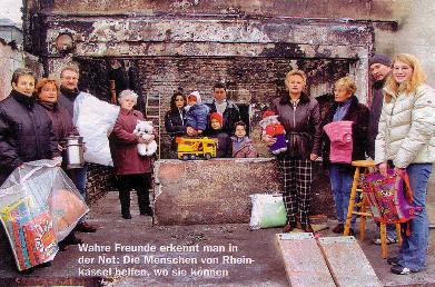 Es klingelt an der Tür. Nachbarn bringen die verschiedensten Dinge: Besteck, Töpfe, Gläser, Haarshampoo. Alles von guten Geistern wie Senta Schöberl (67) selbstlos gespendet. Nachbarin Karin Gemmerich (41) kommt mit Ehemann Franz (40) und Tochter Bianca (13) vorbei. Sie bringen einen Couchtisch. "Wir in Rheinkassel lassen keinen im Stich." Die ehemalige Vermieterin Aenne Blatt (79) passt auf die drei Jungs auf, die sie liebevoll "Tante Aenne" nennen: "Ich bin im Krieg aufgewachsen und weiß, was bittere Not ist. Hauptsache ist, dass alle am Leben sind."