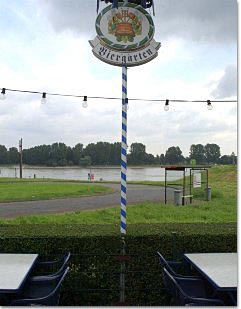 Dem ist nur wenig hinzuzufügen. Zumal Biker 1. nette Orte kennen und 2. ordentliche Portionen mögen. Sowas spricht sich rum, und an lauen Sommerabenden ist der Laden selbst unter der Woche rappelvoll. Die sehr freundliche Kellnerin schafft Speis und Trank zügig herbei. Das Kölsch kommt im gläsernen Krug (0,4l für 2,40 Euro) auf die Plastikformtische, und bis der Busfahrer vom 121er seine Pflichtpause im Haltestellenhäuschen abgefeiert hat, ist auch das Essen da.