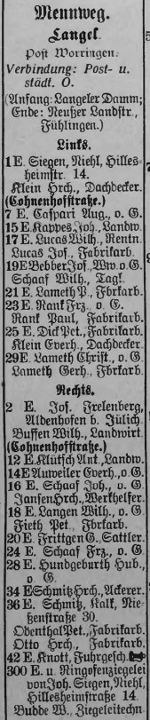 | 1 | Siegen, Riehl | Hülsesheimstr. 14; Klein Erich, Dachdecker (Cohnenhofstraße) |